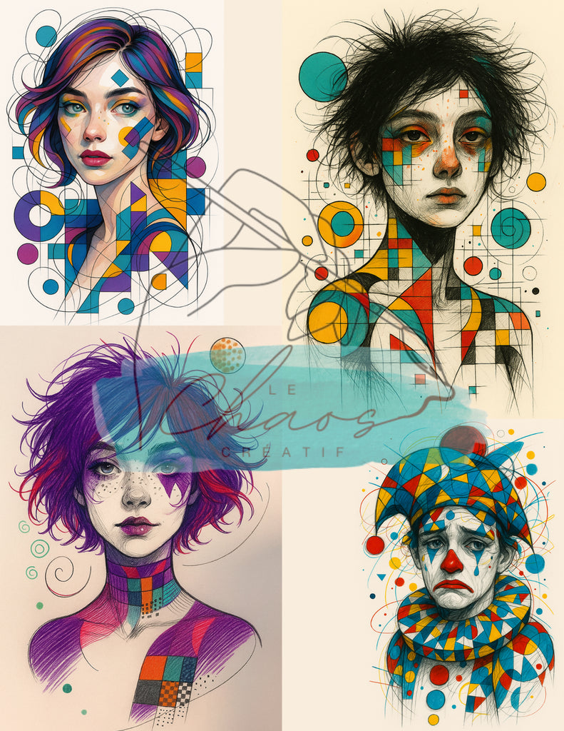 Un album collage rempli de personnages expressifs dessinés aux crayons, chacun vivant une émotion plus intense que l’autre.