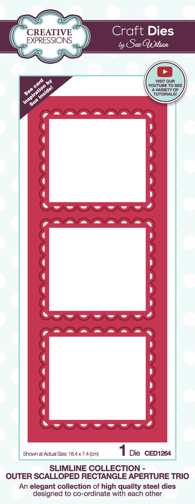 The scalloped rectangle frames are perfect for slim line cards and fun mixed media projects. There is also a really cute festive accessories craft die set which includes 10 mini dies covering a range of popular festive elements. These dies cut great apertures for scrapbooking and will be a great addition to your die stash. This die collection can be mixed and matched with other dies in the range or used on their own and do not forget to team them with the slimline stencils. Try using with the mini-expressions range to add the perfect wording to your projects. You will also find a selection of slimline stencils to pair with the dies. The pack contains lots of project inspiration to get the creative juices flowing. The dies are compatible with most home die cutting machines, fits through a 6-inch-wide machine. Single die set Die size 18.4 x 7.4 cm