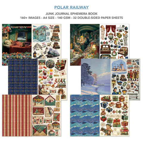 The Polar Railway Junk Journal & Ephemera Book is a special resource for ephemera cards, tags, postal stamps, medallions, labels, sentiments and other creative elements. Includes 32 double-sided sheets with over 160 images, plus 4 transparent adhesive pages. The set has a vintage feel with Christmas and Wintery imagery, showcasing steam trains, winter landscapes as well as lots of Christmas elements, plus so much more. No other pad offers more embellishments for your projects! In its handy A4 format, it’s the perfect match with the Fussy Cut Pad. Ideal for Christmas and Winter themed junk journals, collage, scrapbooking, card making and paper craft art!
