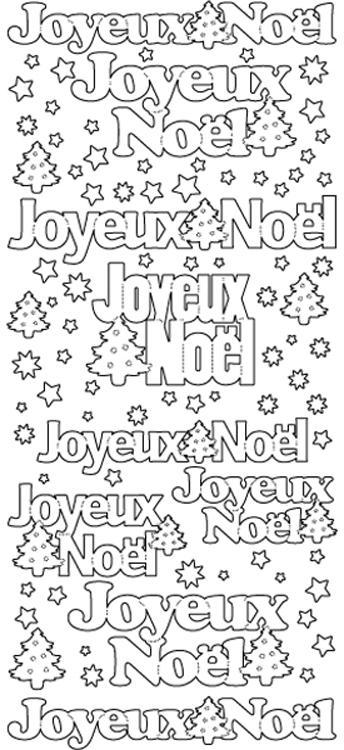 A sticker sheet with French language text "Joyeux Noel". Includes a variety of small Christmas themed stickers including trees, and stars for additional decoration.