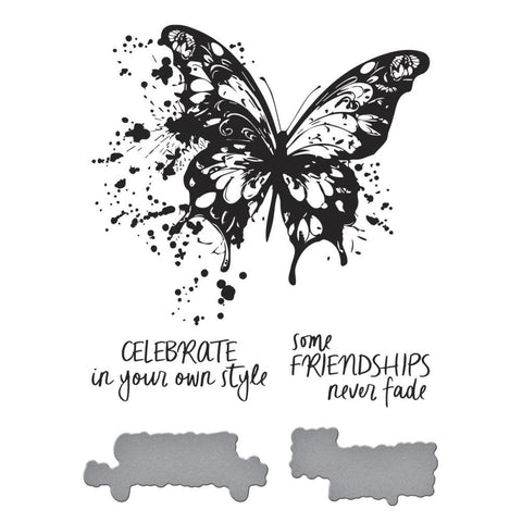 Butterfly Splatter BetterPress Plate & Die Set is part of the Beautifully Imperfect Collection. Impress a large and wonderful butterfly design with all its paint splatters... without any mess! The other two plates press sentiments athat can be cut out with coordinating dies to make them stand out. Ink the plates with the BetterPress Ink to be pressed against the BetterPress Cotton Card Panel and Sheets for a crisp letterpress design. Only four easy steps for professional results!