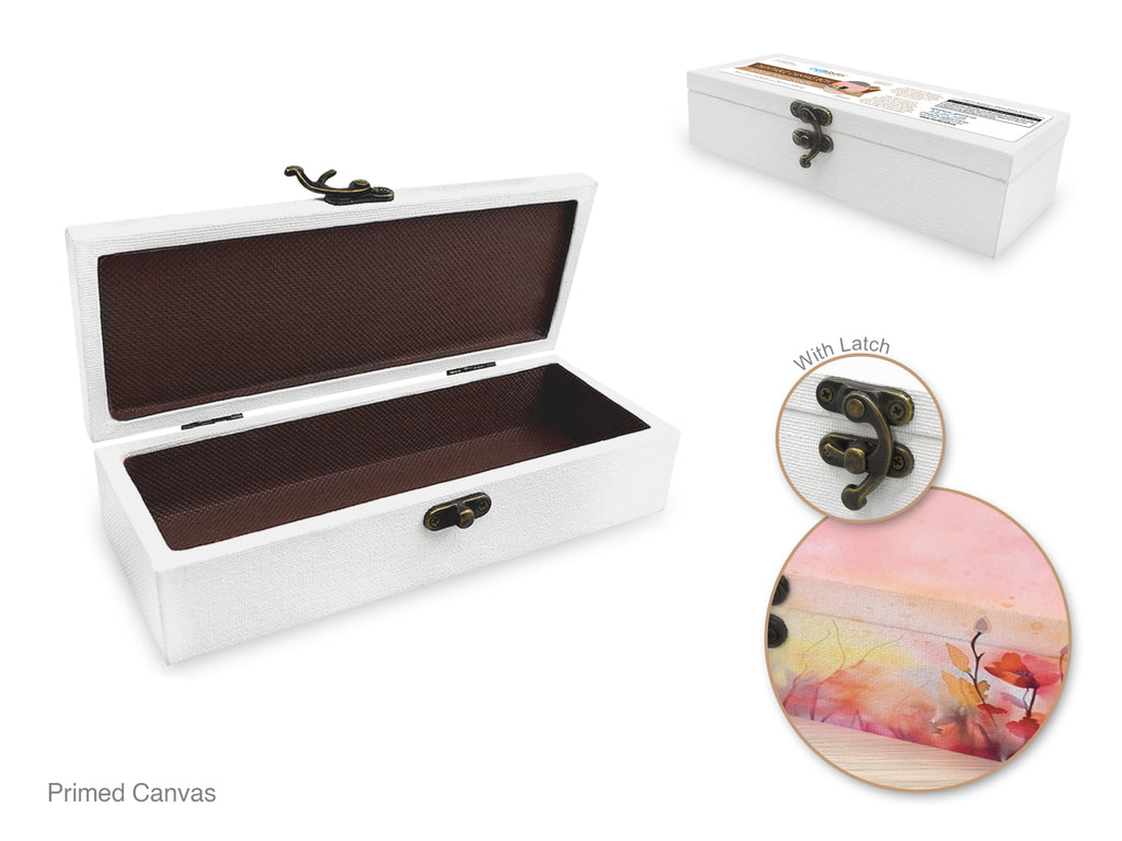 MultiCraft Paintable Canvas Wood Box: 8"x3"x2" 230gsm Double-Primed w/Latch