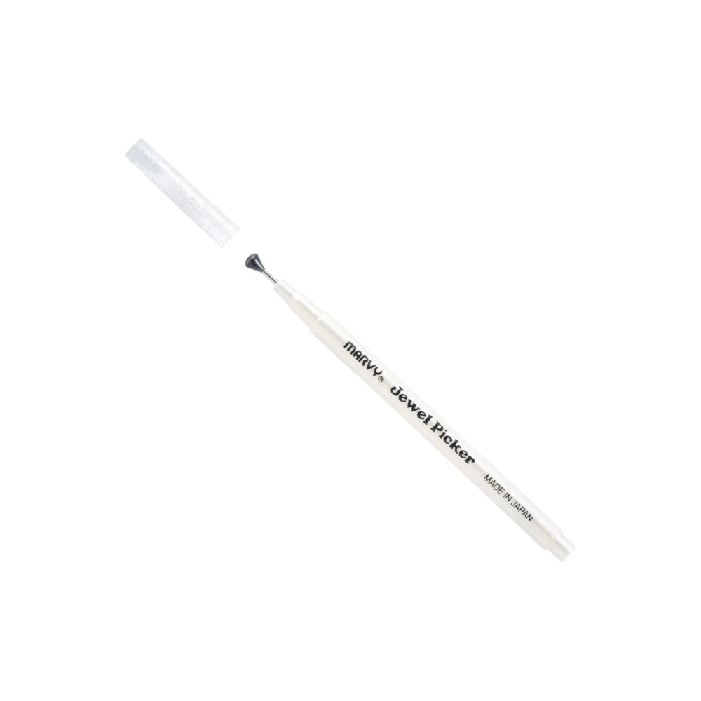 Now available with a jumbo tip. Picking up small jewels is hard, even with tweezers. The Marvy Jewel Picker is an easy way to pick up tiny jewels, beads, rhinestones, gems, glitter, confetti, punch outs, and more. This jewel picker jumbo takes the struggle out of adding tiny details to your projects and increases the fun.