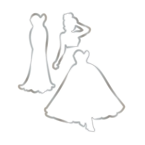 This Elegant Lady die and stamp set contains three metal dies and five photopolymer stamp sets. Featuring a special two-in-one design, you can create two different looks from the same set as you will receive one upper torso and face of a lady and two different dresses: a sleek, slim-fitting evening dress and a full-skirted ballgown. The bodice on both dresses is the same shape, so you can over-stamp one of the two patterned bodices from the set for a pretty finish. The largest die size is 10x10cm.