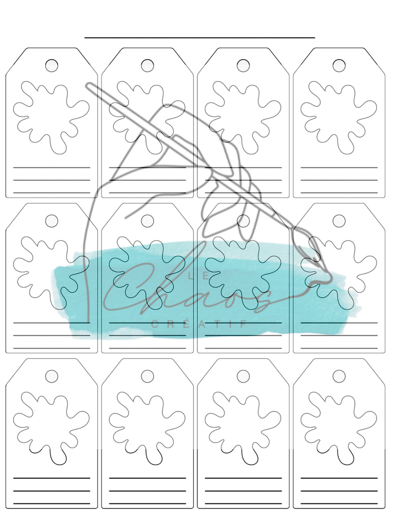 • 6 pages de 12 tags chacune (soit 72 couleurs possibles)