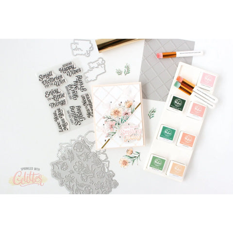 This stencil set, consisting of six pieces, is designed to complement the Breezy Blossoms stamp set, press plate, and die set. Each stencil has its own layer and comes with alignment guides for precise placement when used individually. When combined with the stamped image, the alignment guides are not necessary and you can align each layer to the image itself. For a softer appearance, use the stencils without the stamped image. Enhance the image with more detail by stamping with detail black ink or heat embossing in your preferred powder. The stencil design has a measurement of approximately 4.25 x 5.5 inches