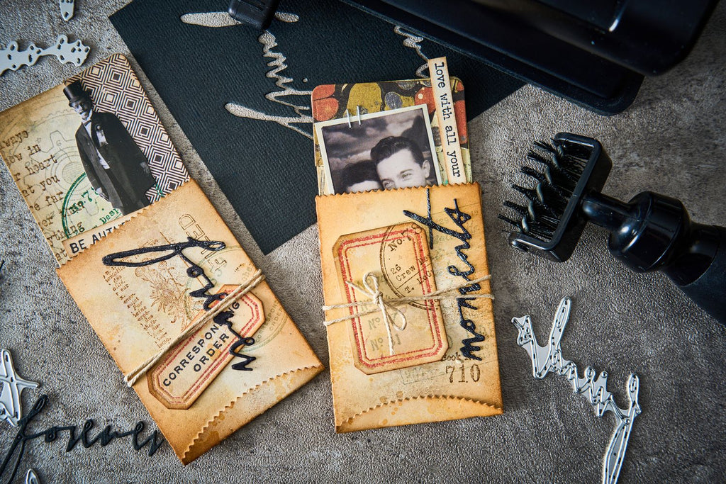 Sizzix-Thinlits Dies. Thinlit dies offer a variety of affordable solo options or multi die options. Thinlits are easy to use and are compact and portable. These dies are compatible with Sizzix BIGkick, BigShot, Vagabond and Big Shot Pro. This package contains seven dies. Design: Handwritten Journey (measuring between 2-5/8x1- 5/8 inches and 2-7/8x1-7/8 inches). Designer: Tim Holtz.