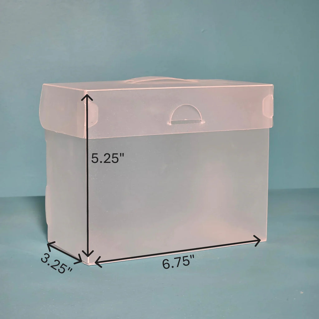 Photos to vinyl rolls, the File Master line comes in just the size you need. These durable boxes have a full-cover locking lid. Easy to stack and store, they are a great solution for general organization. Use with the Flip Flap Pockets or Fancy Folios.