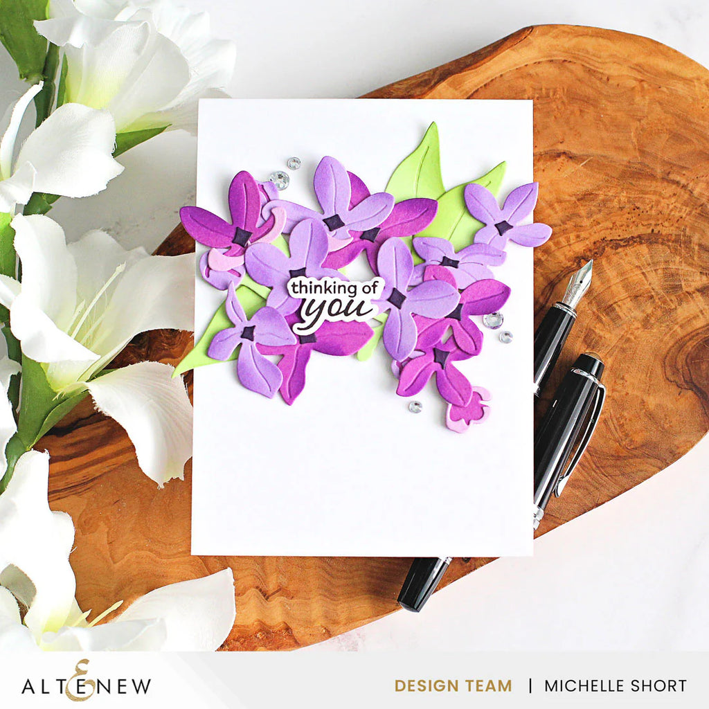 The Craft-A-Flower: Lilac Layering Die Set features numbered layered lilac flowers and a numbered branch for easy assembly, adding intricate detail to your paper crafts. Symbolizing renewal & confidence, lilacs bring meaningful beauty to your handmade projects effortlessly.