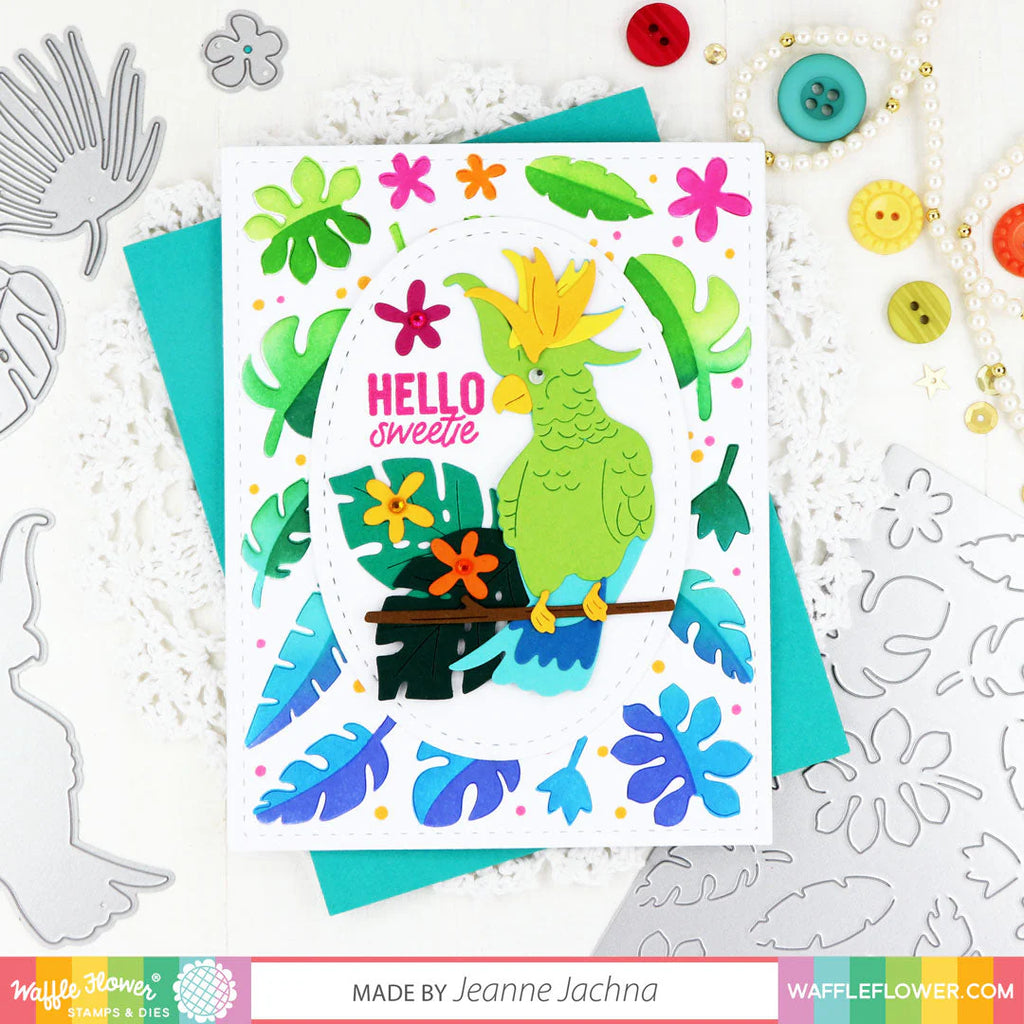 This die was originally released as the kit die for our Tropical Card Kit in 2022. It features an adorable parrot with lovely details, along with twigs, leaves, and flowers to help you make a tropical-themed card. You will find more coordinating products to go with set listed below.
