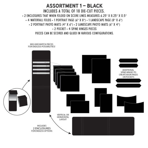 "Add a new dimension of fun and surprise to your scrapbooking projects and mini albums with the Create-An-Album Assortment #1. This essential set of interactive flips and flaps is designed to bring your memories to life, creating a truly unique and engaging book for anyone who flips through it. Easily integrate these mix and match elements into your pages to add extra photo mats, hidden journaling spots, or unexpected pop-up features. They are perfectly sized and engineered to work seamlessly with the Create-An-Album covers and spine systems, ensuring a professional and cohesive finish for every album you build.