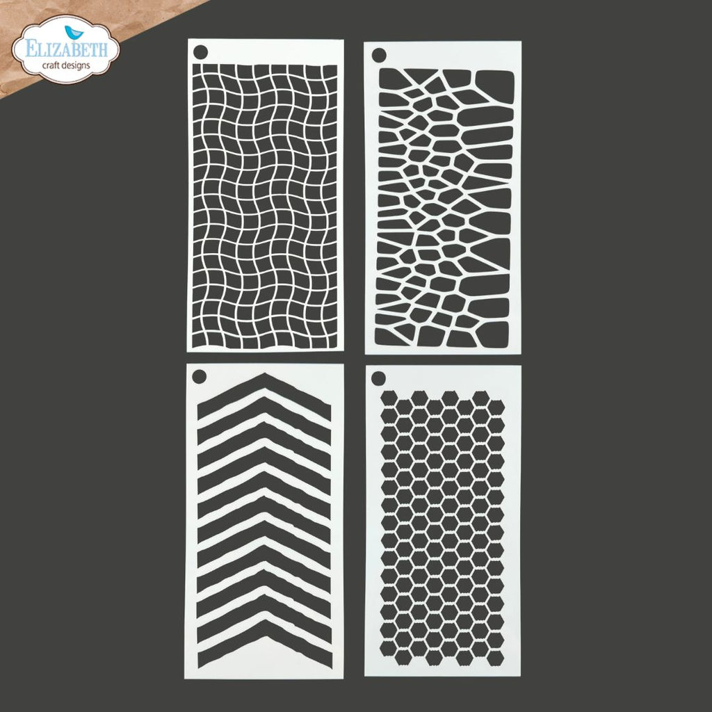 The Journal Stencils 10 stencil set is part of the Hello You Collection from Art Journal Specials. Including a mix of designs, this set is perfect for creating beautiful decorative elements and backgrounds in your art journal pages and projects. Ideal for using different mixed media techniques, these versatile patterns will be your go-to for years to come. This versatile set includes four stencils, each measuring approximately 4.3 x 8.7 inch (110 x 220mm).