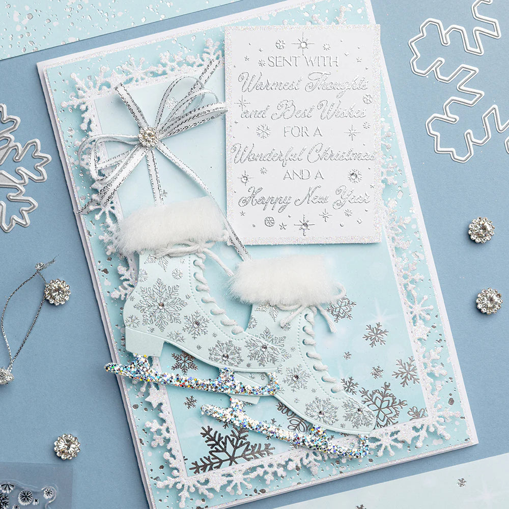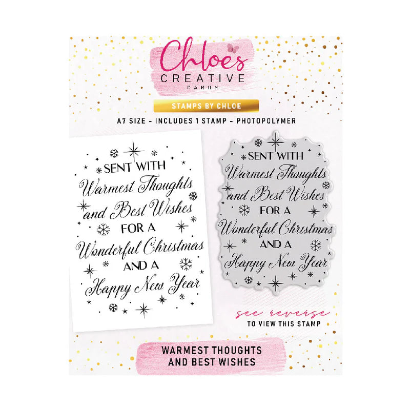 This A7-sized Warmest Thoughts and Best Wishes photopolymer stamp is perfect for adding a heartfelt sentiment to your cards, gift tags and gift boxes. The greeting on this stamp reads ‘Sent with warmest thoughts and best wishes for a wonderful Christmas and a happy new year’. You can either use it as the main focus on small card layouts or large tags, or as part of a larger card design. For a more luxurious feel, try heat-embossing the sentiment with a metallic embossing powder!