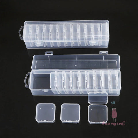 Stay organized and enhance your crafting experience with the 12-in-1 Slimline Clear Storage Box Set with Hanging. This long, sleek organizer features 12 individual mini boxes, each equipped with secure snap lids, all housed neatly within a single durable outer box. With its innovative hanging feature, this storage box offers the perfect blend of portability, accessibility, and space-saving functionality, making it an essential tool for crafters, hobbyists, and anyone who loves staying organized.