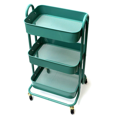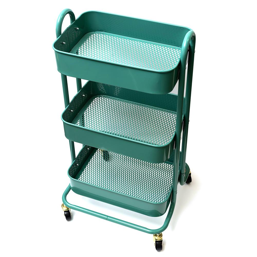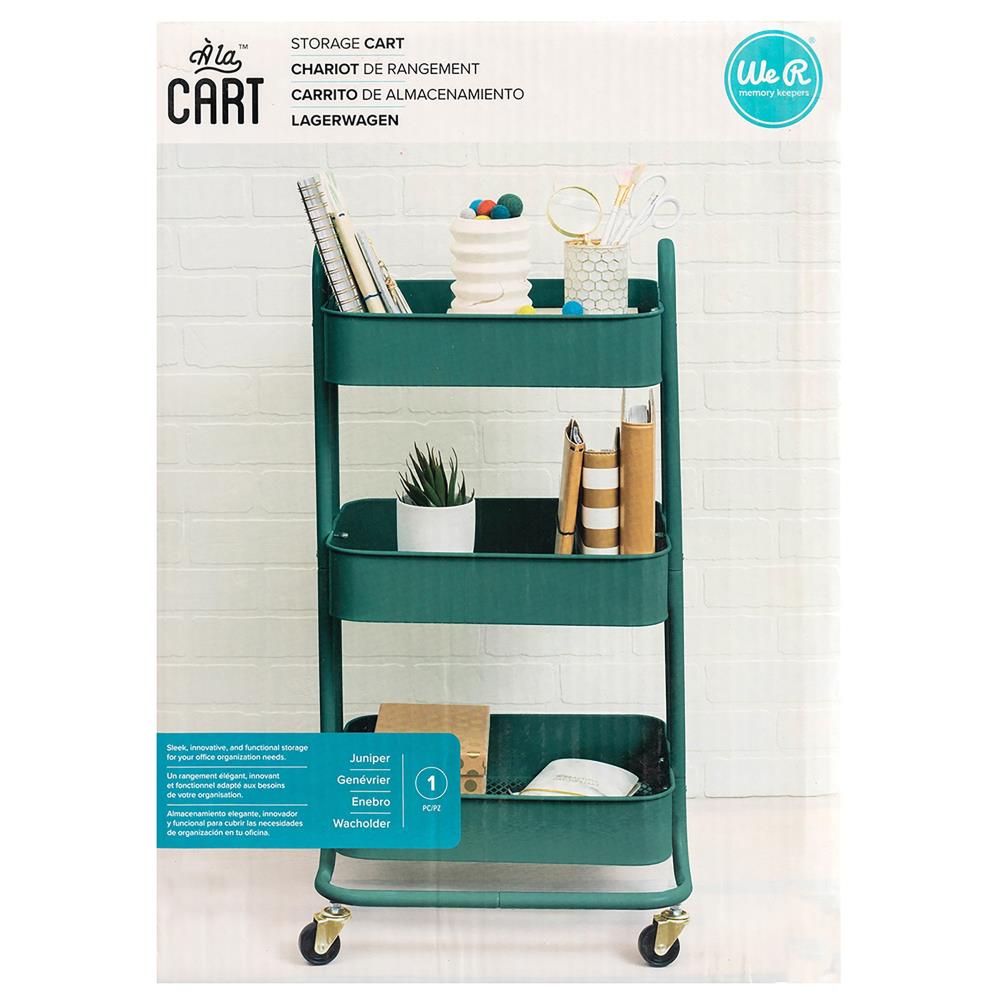 Keep your crafts organized and at your fingertips with this sturdy metal cart. It features three shelves for convenient storage with durable multidirectional wheels. Shelf size: 15.62 x 3.25 x 10.75 inches. This package contains one We R Memory Keepers Storage Cart, three shelves, Juniper.
