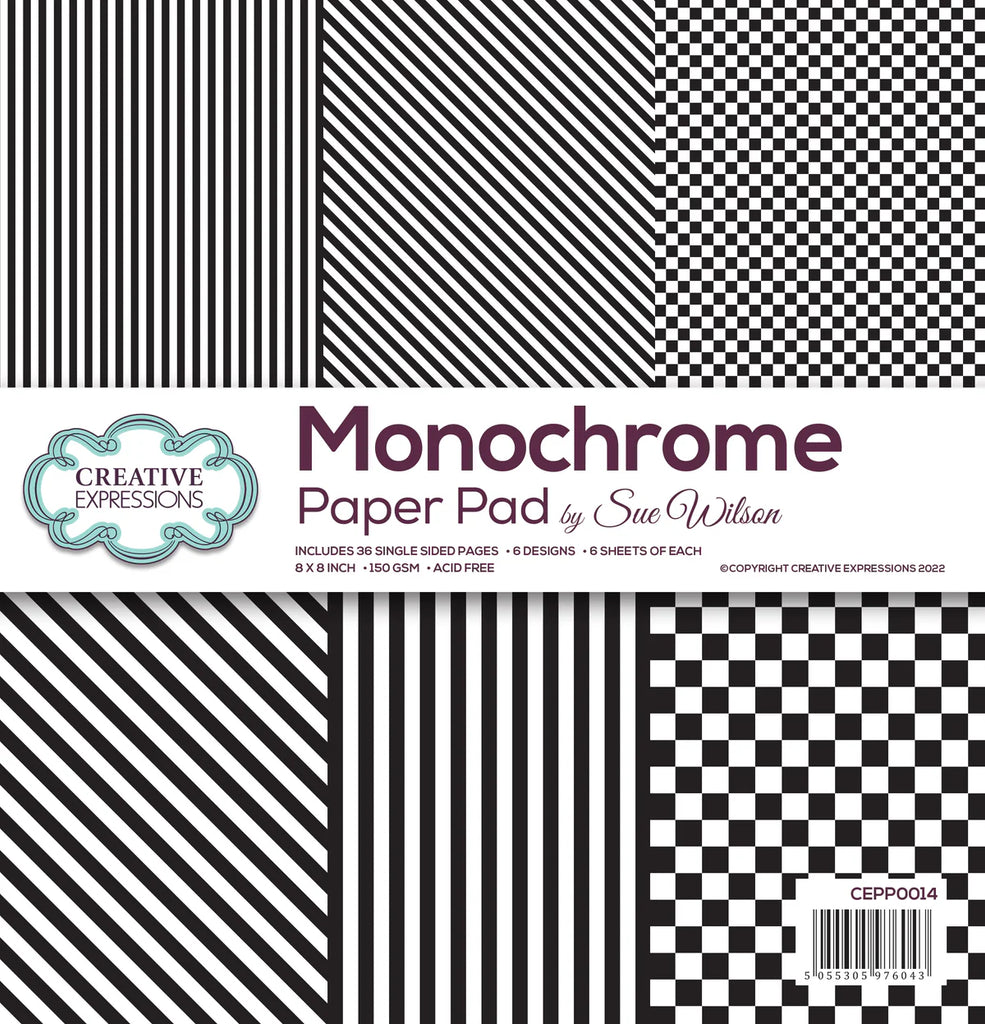This Monochrome Stripes paper pad contains 36 single sided sheets in 6 designs giving you 6 sheets of each. This is an 8 x 8 inch pack, the paper is 150 gsm and is acid free.