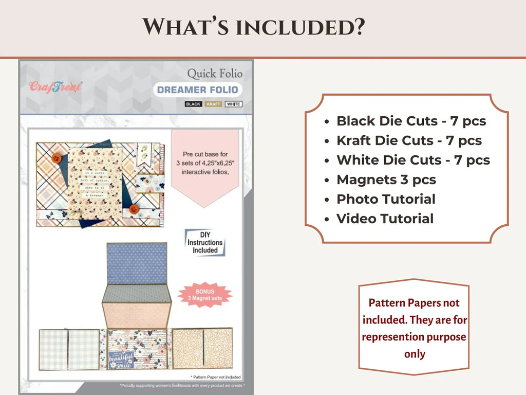 Create 3 stunning projects in 1 with Quick Folio! Designed for crafters who love fast, fuss-free scrapbooking, this kit features easy-to-follow measurements and a simple layout system. Whether you're a beginner or a pro, you’ll enjoy assembling beautiful folios without the overwhelm. Perfect for gifts, memory keeping, or last-minute projects!