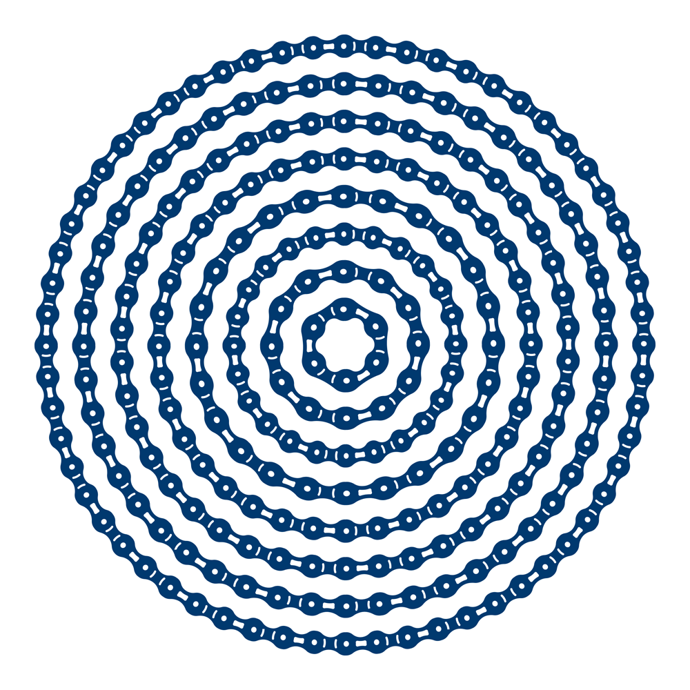 This fabulous Neo Victoriana Circle Die Set features 8 dies in a variety of sizes. The dies are designed to resemble the chain that is often found on a bicycle. Use this fabulous die set to create frames around focal points, as embellishments, or pair them with the other dies in the Neo Victoriana range to create a steampunk-inspired centrepiece.