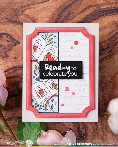 A new themed add-on for the Round Bookmark die,the Book Lover Stamp Set includes two bookmark designs on one stamp. The spacing between them matches the colorings stencils, so you can color both at the same time.