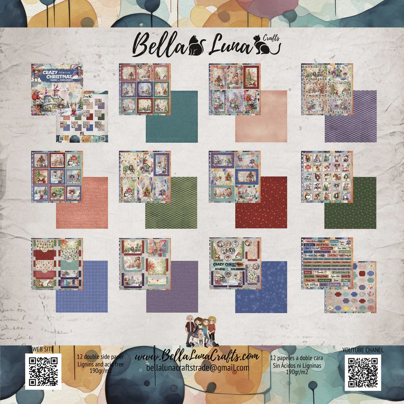 Bellaluna Crafts 12 double-sided papers 12x12" Crazy Christmas Frames & Complements