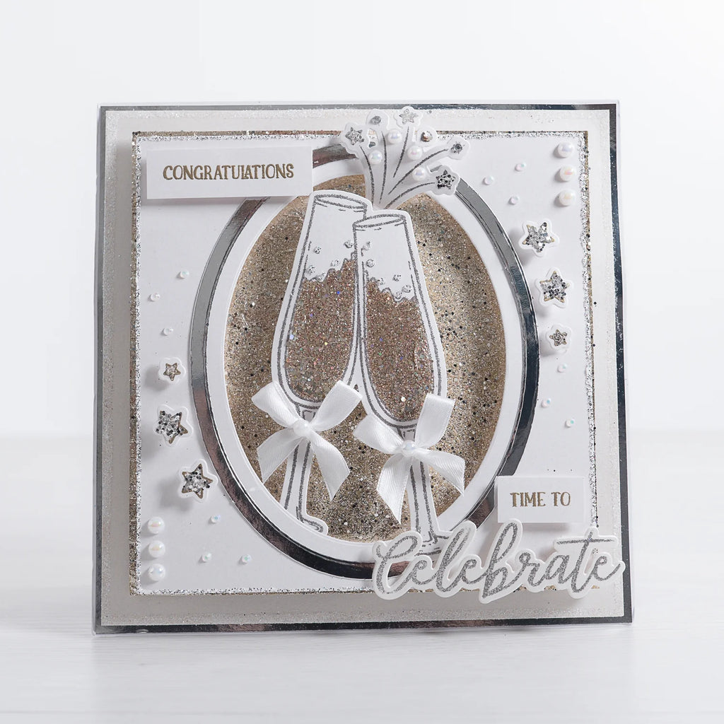 The Champagne Glasses Stamp and Die Set is perfect for a variety of projects, simply stamp, die-cut and colour to create beautiful projects! Perfect for cardmaking, papercraft, scrapbooking and home decor projects.