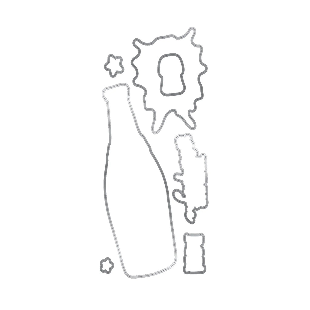 The Time to Celebrate Stamp and Die Set is perfect for a variety of projects, simply stamp, die-cut and colour to create beautiful projects! This set contains a large Champagne Bottle Image, along with Champagne Spray and sentiments. Perfect for cardmaking, papercraft, scrapbooking and home decor projects.