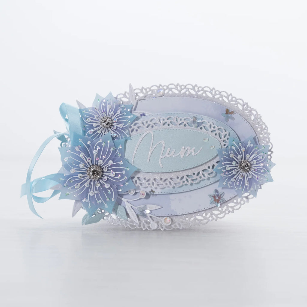 Add delicate edges to your cards with this 5x7” Decorative Oval metal die set! Each of the seven dies in this set has been sized for perfect matting and layering – no measuring or guesswork needed! You will find either lacey- or faux-stitch-effect edging for a decorative finish to each die shape. You never need to worry about losing your dies, as each set comes with a magnetic storage panel. So, whether you want to create pretty shaped card blanks, perfect matts and layers, elaborate stamping and topper panels or delicate tags, these are the sets for you.