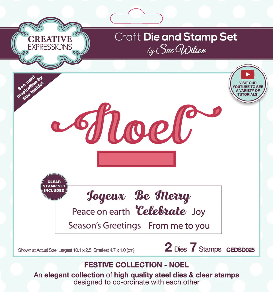 This die and stamp set that will be a great addition to your Christmas paper craft arsenal the set will be wonderful for card making, scrapbooking, mixed media. This is a very versatile set with two dies and seven clear stamps. Mix and match the stamps and dies for fun finishing touches to your paper crafting or as the main image on a card. This die set will work beautifully with the other dies, the possibilities are endless. The dies are compatible with most home die cutting machines. Size largest die 10.1 x 2.5 cm smallest die 4.7 x 1.0 cm, and 7 clear stamps set.
