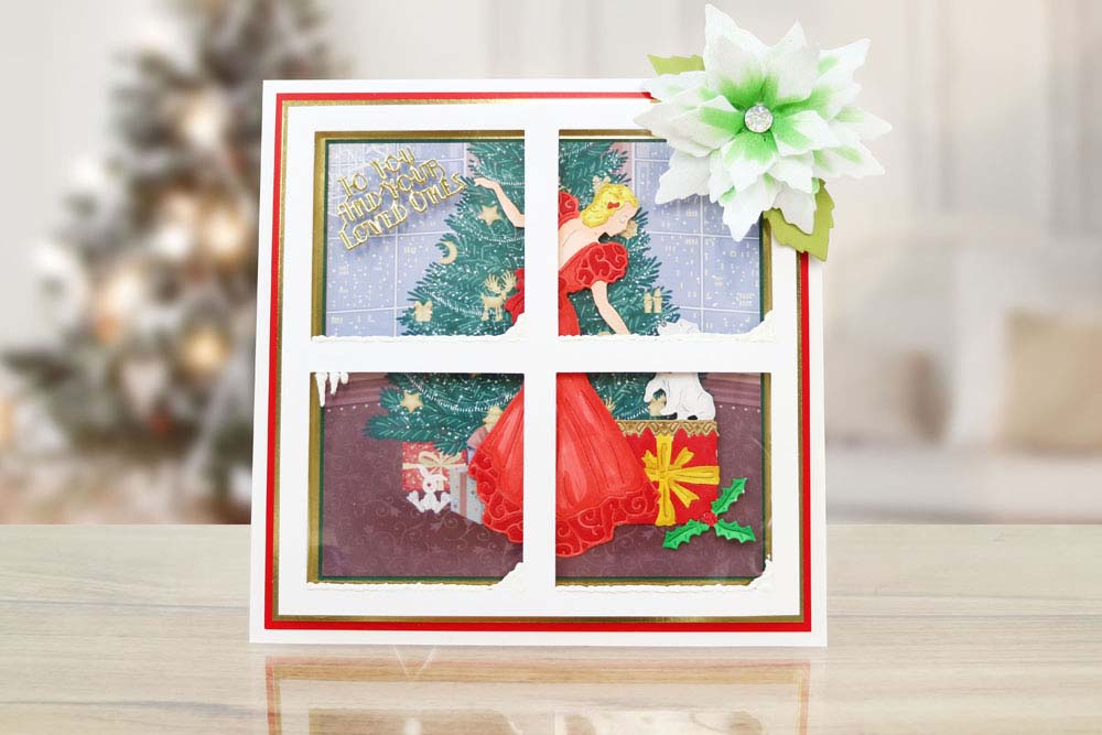 This Tattered Lace die plays on the famous saying at Christmas ‘a Puppy is not just for Christmas’. The die features a lady with her puppy which is stood upon a Christmas present, the lady wears a beautiful gown with intricate swirl hem and shoulder detailing as well as a bow tie around her waist. Use this die within a homely scene, in front of the Christmas tree or the fire dies for those perfect festive crafts. The design can be snipped into to use the lady and puppy separately for different projects or to change the scene of the card front.